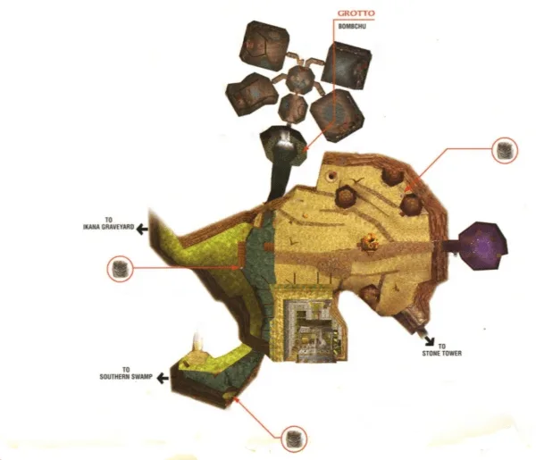 - 地点: 沿着通往伊卡纳峡谷的路,找到两道栅栏之间的一块巨石。使用炸弹或 Goron 面具的重击能力摧毁巨石,露出入口。